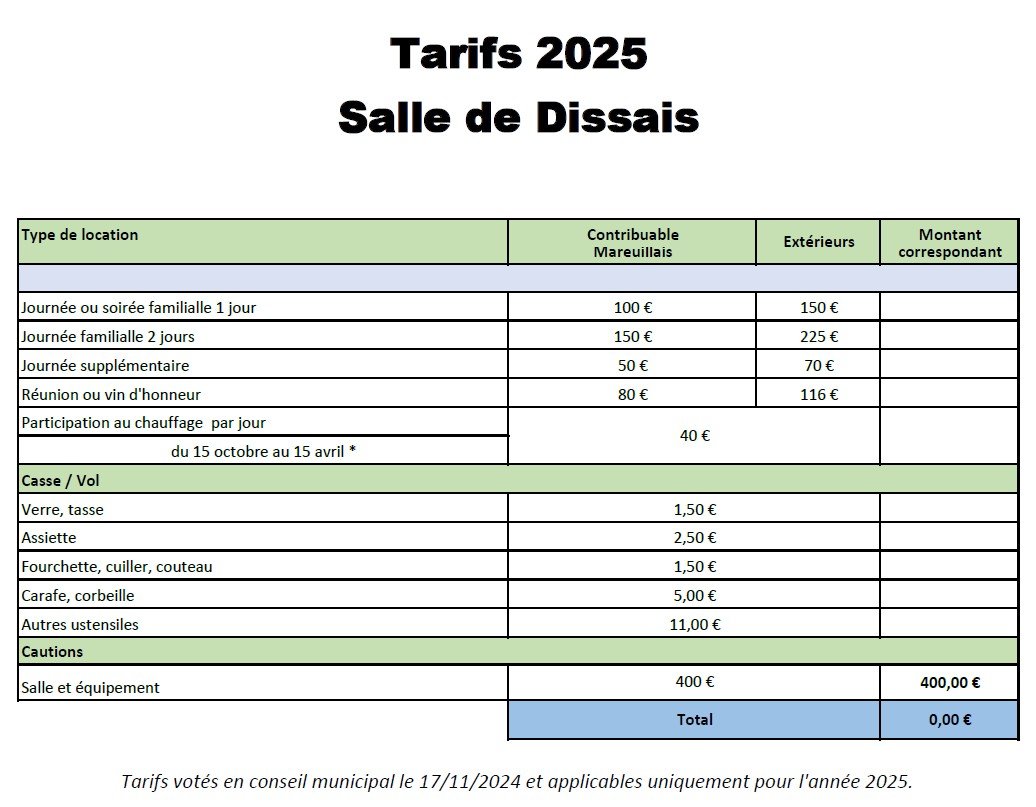 Celle-ci est réservée en priorité aux associations et aux Mareuillais. Elle pourra être également louée, dans la mesure des disponibilités, à des associations ou à des personnes extérieures à la commune.