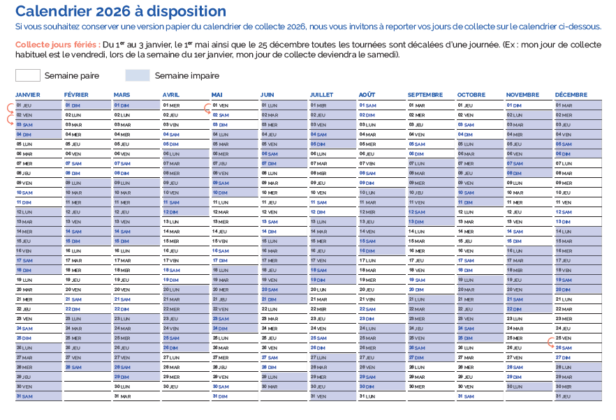 Ci dessous les informations sur la redevance incitative, les jours de collecte ordinaire, les jours de collecte en cas de jour férié.